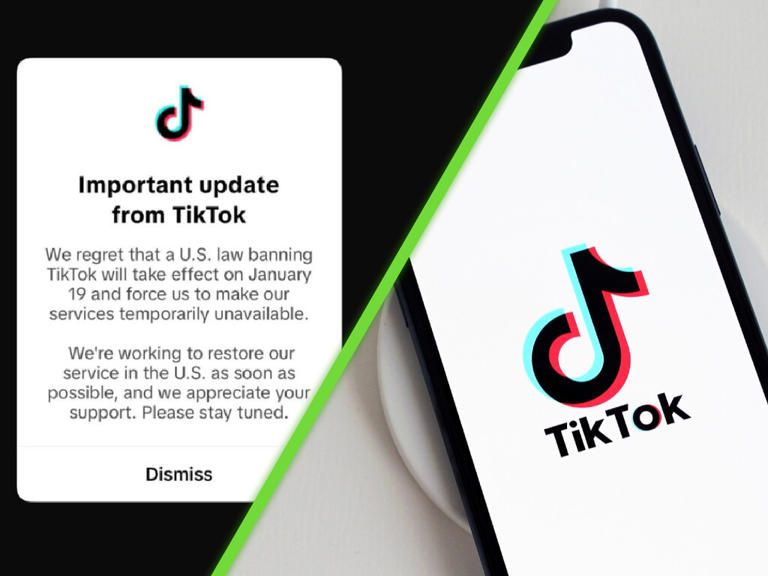 Mensaje: Los servicios de TikTok no estarán disponibles "temporalmente" debido a la prohibición decretada por el Congreso.